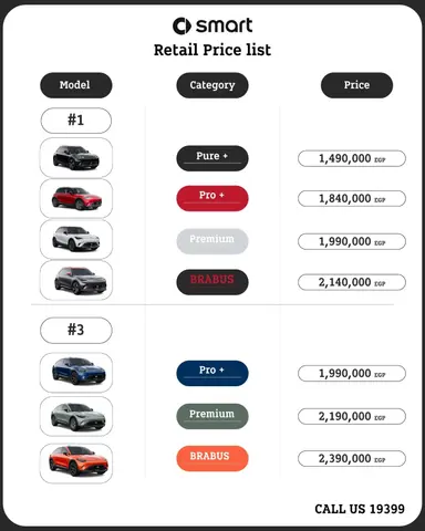يُذكر أن طرازي سمارت #1 وسمارت #3 يتميزان بتصميم عصري وأداء قوي، خاصة فئة BRABUS عالية الأداء، مما يجعلهما خياراً جذاباً في سوق السيارات الكهربائية المصرية المتنامي.
